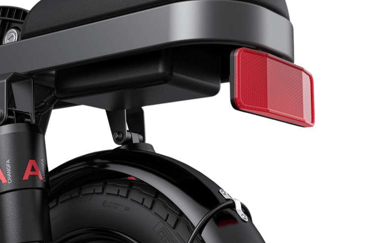 Equipped with disc brakes, quad suspension, and a bright LED headlight for safe riding anytime.